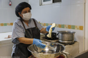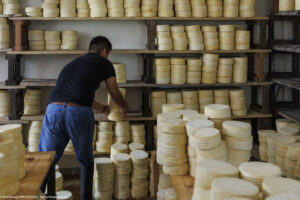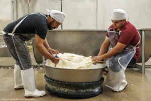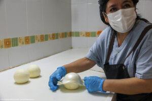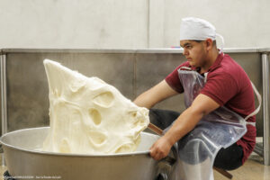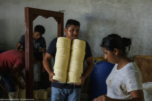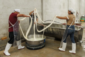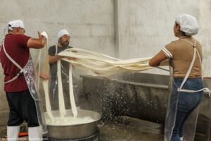 La spécialité de la fromagerie San Martin de Tlaxcala, dans l’État de Tlaxco au Mexique, est le Queso de hebra, aussi connu sous le nom de Queso Oaxaca, un fromage emblématique du Mexique. Chaque après-midi, une douzaine de personnes s’activent à la fabrication de ce fromage à la pâte longuement filée puis roulée en une grosse pelote. Il fait déjà chaud et humide dehors mais encore plus dans la fromagerie où cette fabrication qui demande de l’énergie fait transpirer à grosses gouttes. »
