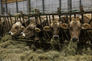 Dominique, « L’alimentation des animaux se compose de foin sec, moulée laitière, un peu d’orge et de du maïs, L’été elles vont aux pâturages. Elles produisent environ 5 000 litres de lait par année chacune. Il reste encore beaucoup de choses à faire… comme améliorer les champs, en y faisant un peu de drainage. Mais pour nous, l’objectif visé est particulier : ce n’est pas le volume qui compte le plus, mais la qualité et l’unicité du produit à offrir. Avec le foin sec, les fleurs, l’air salin notre produit a sans doute un vrai goût du terroir ».